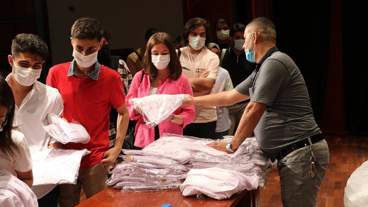 Konuşmaların ardından Tıp Fakültesi birinci sınıfa adım atan 314 öğrenciye beyaz önlükleri tek tek giydirildi.